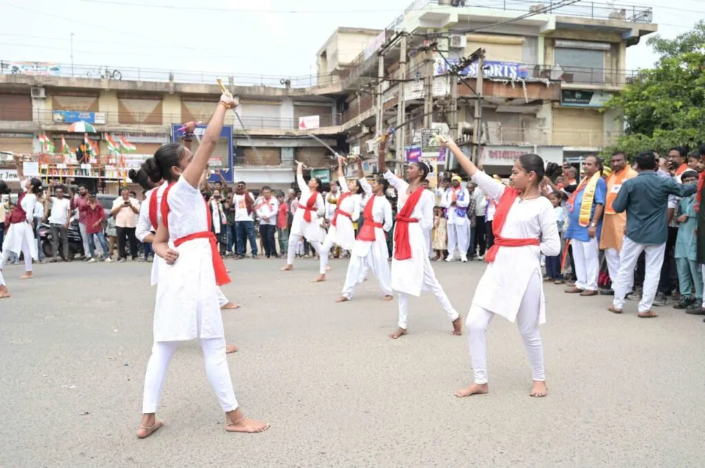 આ કાર્યક્રમનું મુખ્ય આકર્ષણ પટેલ સમાજની દીકરીઓ દ્વારા કરવામાં આવેલું તલવારબાજીનું શક્તિ પ્રદર્શન હતું. આ ઉપરાંત, બહેનોના હાથે પણ મટકી ફોડવામાં આવી હતી. શોભાયાત્રાનું ઉષ્માભર્યું સ્વાગત વિવિધ સમાજો દ્વારા કરવામાં આવ્યું હતું. આદિવાસી ભીલ સમાજે રથ અને કાર્યકર્તાઓનું સ્વાગત કર્યું, જ્યારે ઝંડા ચોક પાસે ગુરુનાનક ગુરુદ્વારાના શીખ સમુદાયે શરબતનું વિતરણ કર્યું. આંજણા ચૌધરી સમાજ અને ભારત વિકાસ પરિષદ દ્વારા પણ સ્વાગત અને પાણી સેવા આપવામાં આવી હતી. કર્તવ્ય ગ્રુપ અને ઝુલેલાલ ગ્રુપ દ્વારા પણ પાણી અને ઠંડા પીણાંનું વિતરણ કરવામાં આવ્યું.