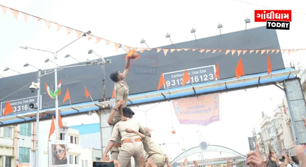 ગાંધીધામ ટુડે, ન્યૂઝ : ગાંધીધામમાં વિશ્વ હિન્દુ પરિષદ અને બજરંગદળ દ્વારા જન્માષ્ટમીની ભવ્ય ઉજવણી કરવામાં આવી, જેમાં કુલ 61 મટકીઓ ફોડવામાં આવી. આ ઉત્સવ અંતર્ગત એક વિશાળ શોભાયાત્રા પણ કાઢવામાં આવી હતી, જે લીલાશાહ શિવ મંદિરથી શરૂ થઈને ગાંધીમાર્કેટ, ચાવલા ચોક થઈ ઝંડા ચોક સુધી પહોંચી હતી.
