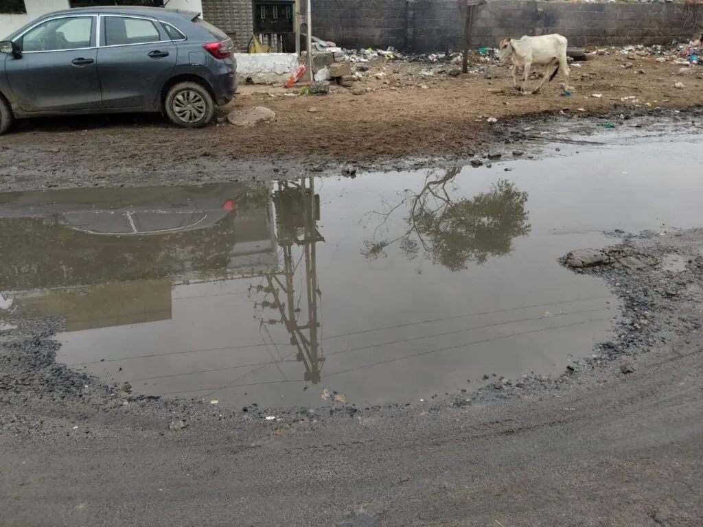 ગાંધીધામ ટુડે, ન્યૂઝ : ગાંધીધામ તાલુકાના અંતરજાળ વિસ્તારમાં આવેલા શ્રીનાથજી પાર્ક નજીકનો મુખ્ય રસ્તો અત્યંત જર્જરિત હાલતમાં છે. નાકા સામે અને શ્રીનાથજી પાર્કની બાજુમાં આવેલા આ માર્ગ પર મોટા ખાડા પડી ગયા છે અને થોડા પણ વરસાદમાં પાણી ભરાઈ જાય છે, જેના કારણે સ્થાનિક રહીશોને ભારે હાલાકીનો સામનો કરવો પડી રહ્યો છે.