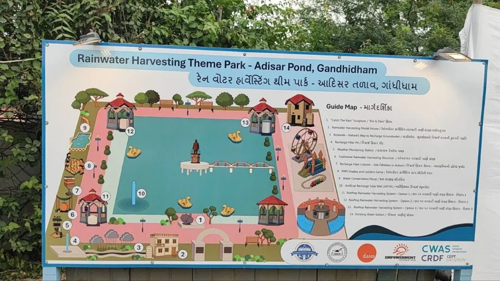 આ થીમ પાર્ક પાણી સંરક્ષણની વિવિધ પદ્ધતિઓનું જીવંત પ્રદર્શન કરે છે. અહીં છત પરથી વરસાદી પાણીનો સંગ્રહ, બાયો સ્વેલ, પરકોલેશન પિટ, ફિલ્ટરેશન સિસ્ટમ, તળાવ આધારિત સંચય અને હવામાન નિરીક્ષણ કેન્દ્ર જેવી ટેકનિક્સ દર્શાવવામાં આવી છે. આ પાર્ક વિદ્યાર્થીઓ, સંશોધકો અને સામાન્ય નાગરિકો માટે એક શૈક્ષણિક કેન્દ્ર સાબિત થશે.